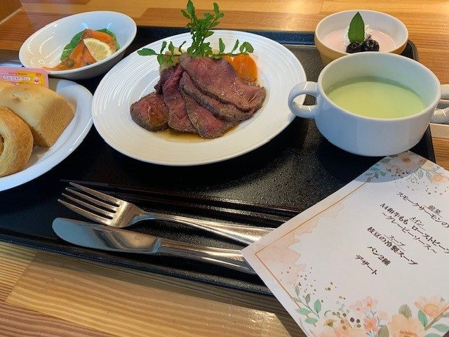 今月のお楽しみ食のメインディッシュは、ローストビーフを召し上がって頂きました。