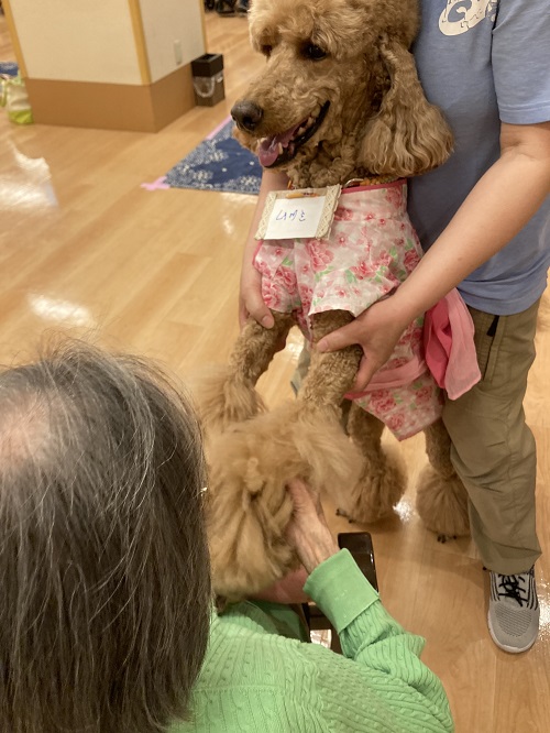 ご入居者に「むつみ」と名札に名前を書いていただきました。 抱っこさせてもらったり、ミルクを飲ませてあげたり、ワンちゃん好...