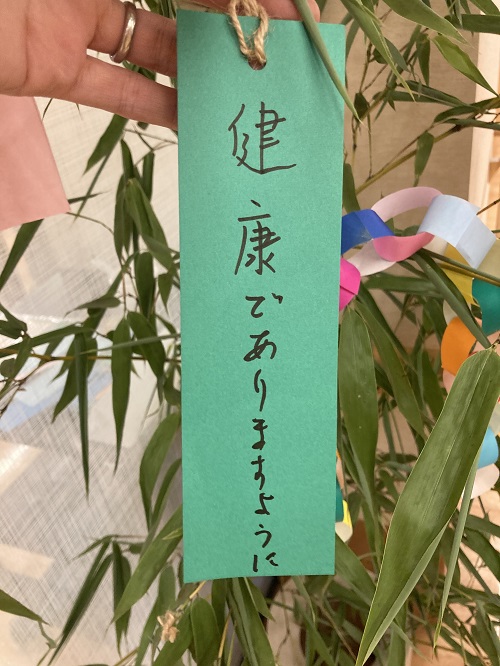 七夕飾りが完成しました。オリンピックイヤーの今年は、短冊に日本選手の応援もありました。 七夕メニューは、五目ちらし寿司、...