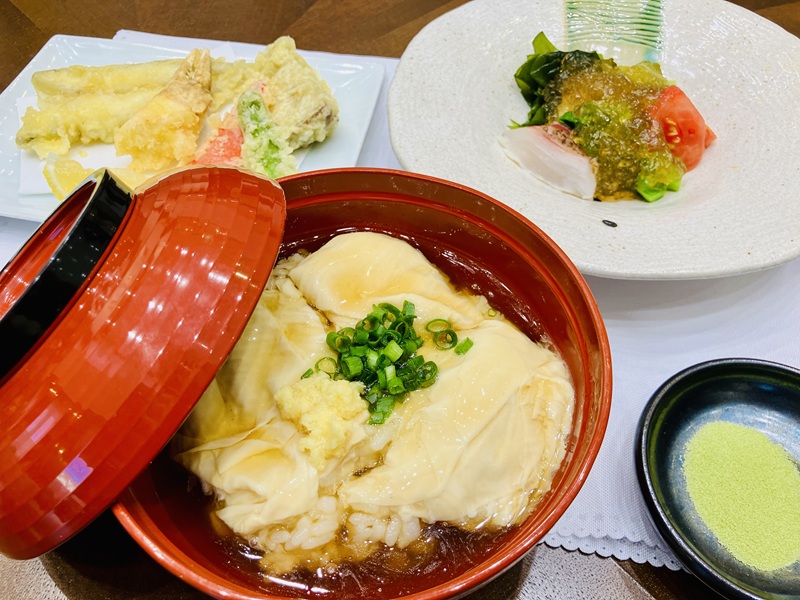 本日はこだわり食材の日 ~節分献立~ 海鮮太巻き 穴子と野菜の天婦羅 いわしの梅煮 升大根黒豆 菜の花のお浸し すまし...
