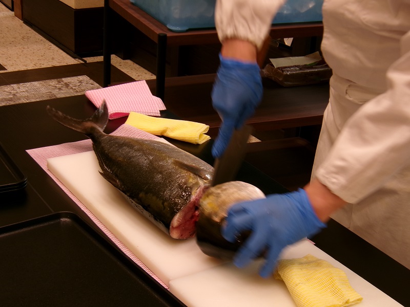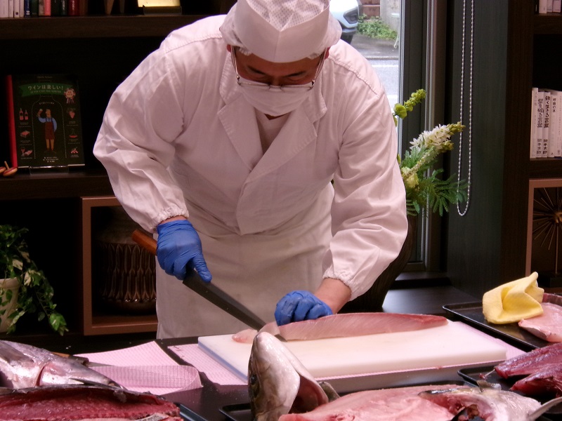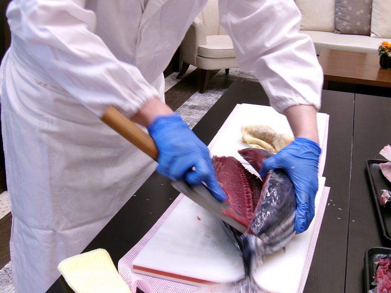 料理長の見事な包丁捌きに