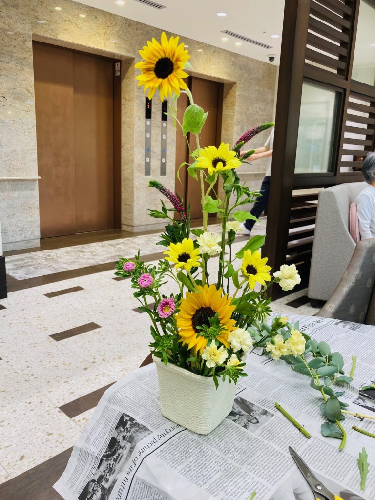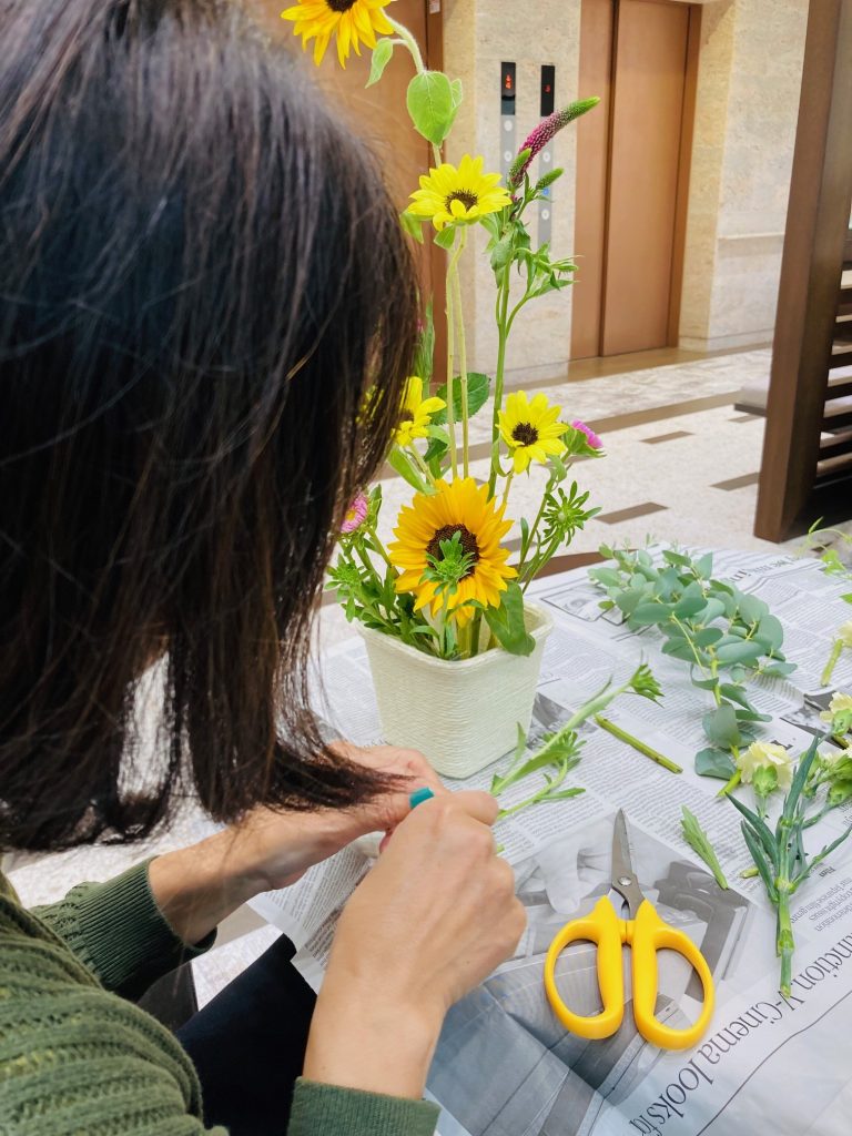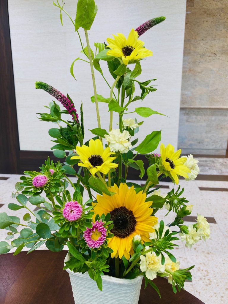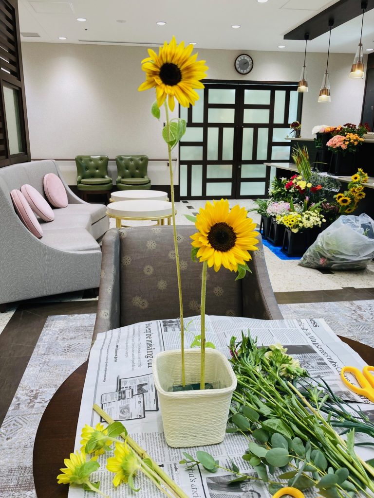 あえて背の高い向日葵を中心に差し、