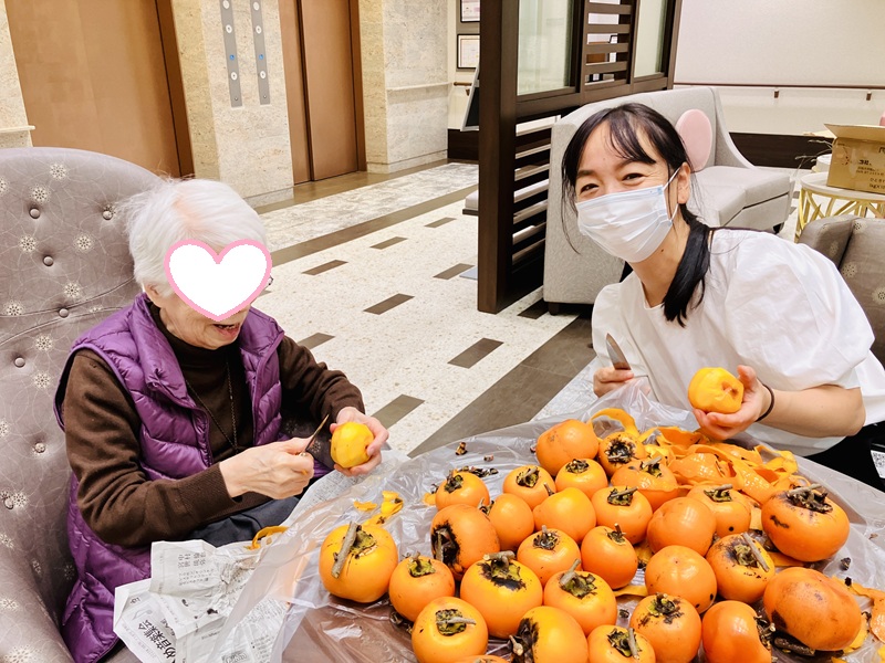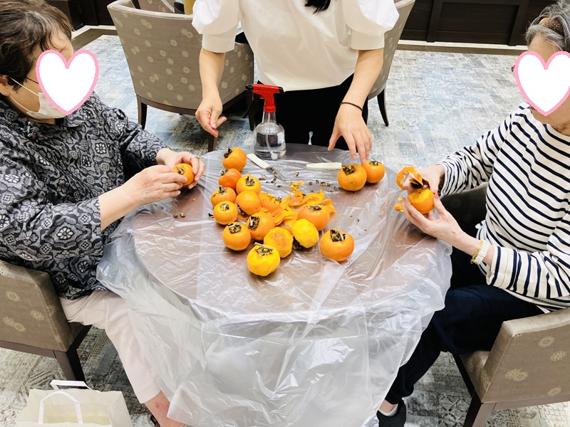 みんなで干し柿作りをしました。