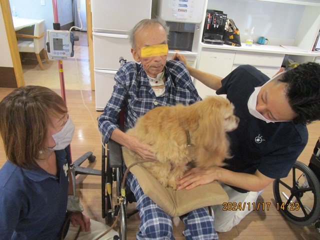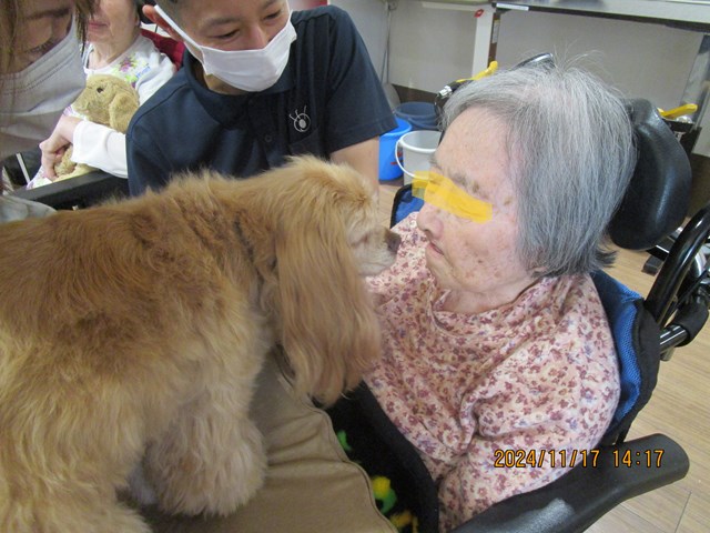 犬種は ”アメリカン コッカー スパニエル”このお仕事を小さい頃からしているベテラン犬だそうです。