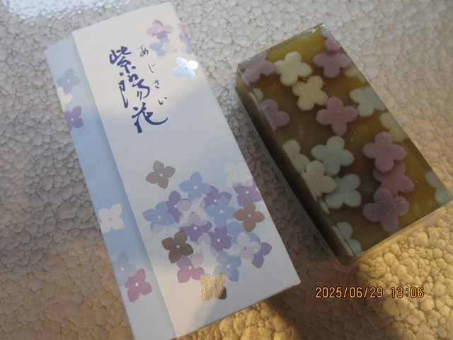 京菓匠 鶴屋吉信 初夏6/初旬~6/下旬までの限定かわいい紫陽花をうつした、さわやかレモン風味の羊羹です。