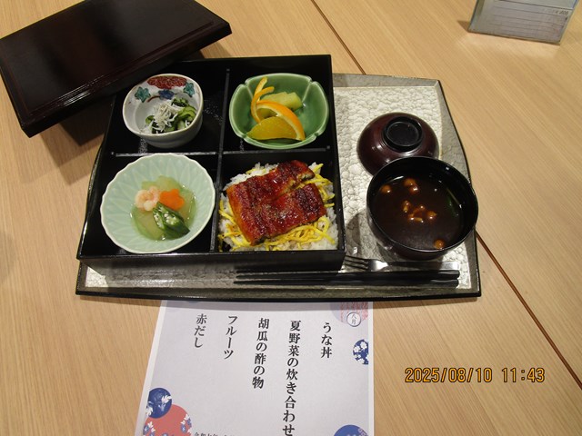 昼食は厨房(LEOC)さんより鰻御膳を出して頂きました。鰻は皆様お好きのようで、お箸がすすんでいらっしゃいました。14時...