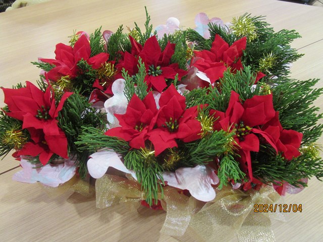 ポインセチアをメインに🎄 12月22日のクリスマス会までに、少しづつ華やかになっています。