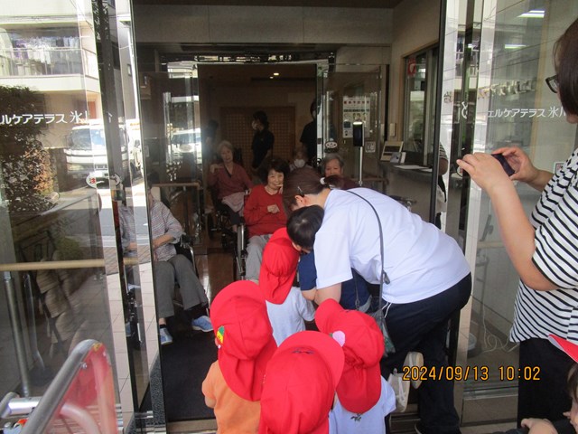 プレゼントを持って♡♡♡ 毎年恒例になりました。敬老の日が近づくと近くの○○幼児舎の園児たちが手作りした品を届けに来てく...