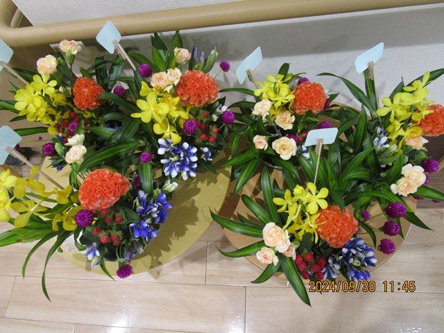 ~秋らしい花材で華やかに~ けいとう・・・オレンジカーネーション・・・うすいオレンジヒペリカム・・・赤い実のものデンファ...