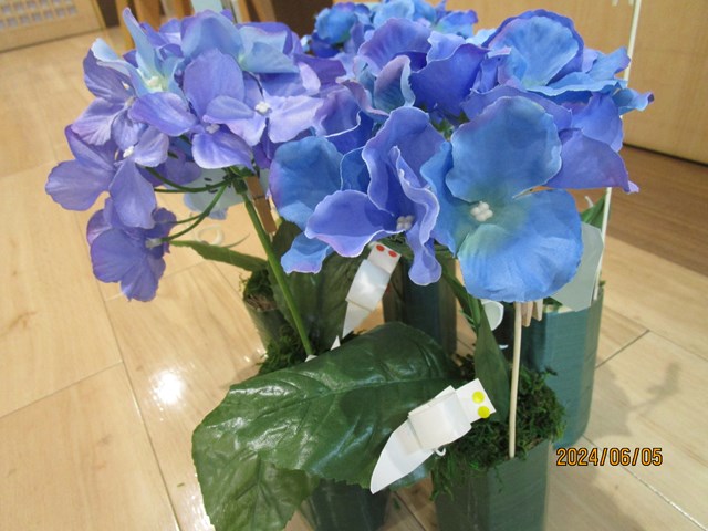 雨にも負けず☔ 鉢植えの紫陽花を作ってみました。よ~~く見ると”かたつむり🐌”も・・水槽の中にも紫陽花?が・・どちらも造...