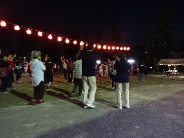 当日は夕方でもまだ蒸し暑く、「盆踊りなんて久しぶり~」「暑いけど風が気持ちいいね~」などなど皆様と色んなお話をしながらいざ公園へ。