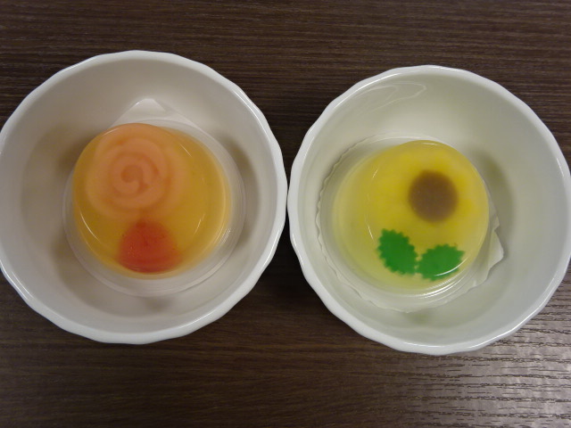 食べるのがもったいないくらい可愛らしく、皆さん「わー、きれいね」「あなたは何の形のゼリー?」「こっちの方がいいわ」など、和気あいあいしながらあっという間に完食されていました。