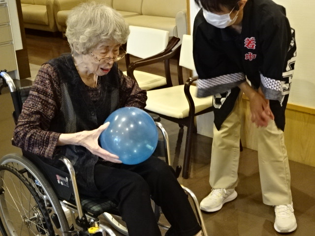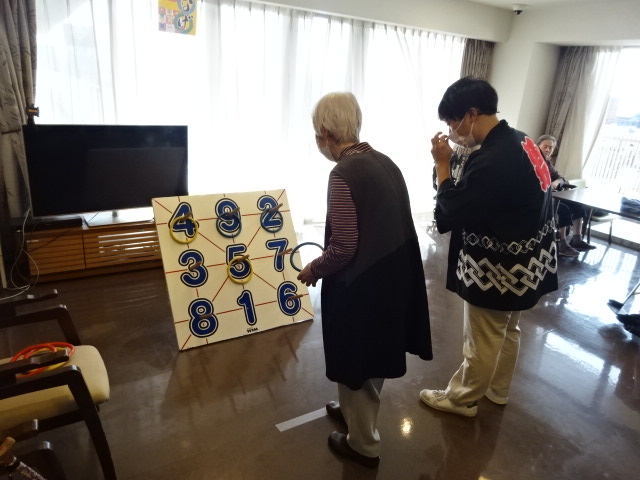 午前の部はゲーム2種類(輪投げとサッカーゲーム)を行い、ワイワイガヤガヤと皆様楽しまれながら体を動かしました。