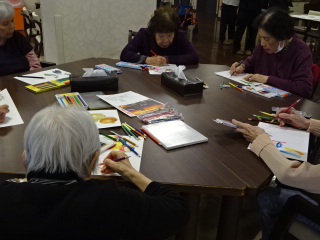 2回にわたり「大人の塗り絵コンクール」に出展する作品を皆さんでチャレンジしました!