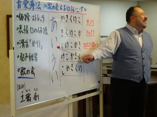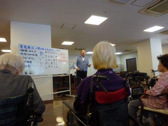 バリトン歌手の土橋先生をお呼びして、口腔体操や嚥下機能の体操を行っています。