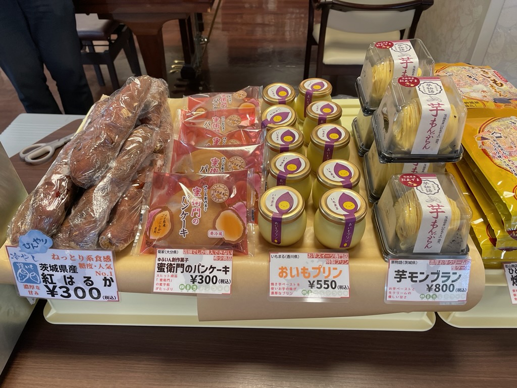 焼き芋自体はもちろん、焼き芋のプリン、ケーキ、洋菓子、和菓子といろいろな種類をご用意しました。