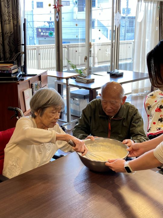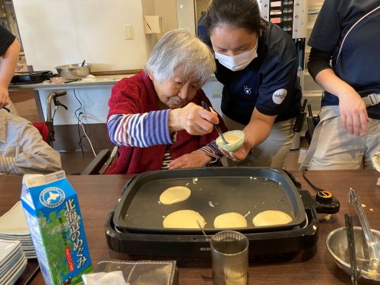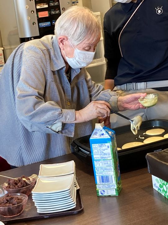 本日、2階フロア職員とご入居者で「どら焼き作り」に挑戦しました。