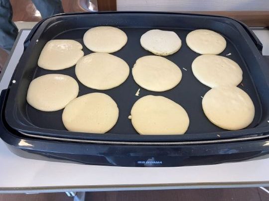 作業は①混ぜる ②焼く ③ひっくり返す ④のせる