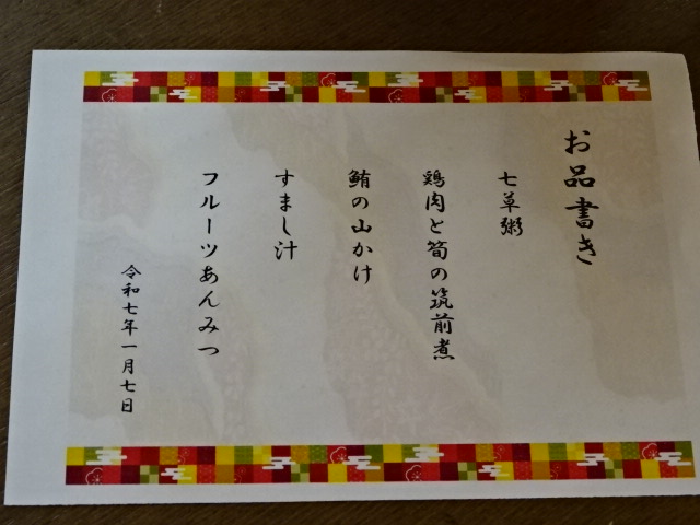 2025年、新年も明け、早くも1月7日となりました。 本日は『七草』という事で、昼食に特別食で『七草がゆ』を頂きました。...