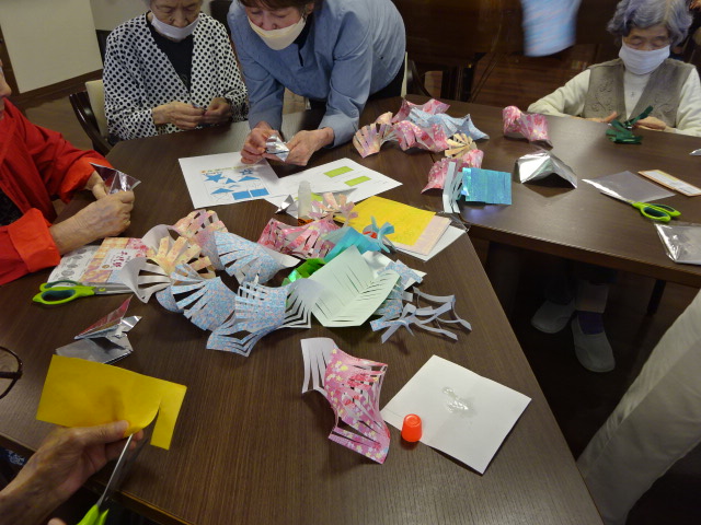 ホームでは、定期的に季節を題材にしたペーパークラフト制作などの手芸レクを行っています。 今回はもうすぐ七夕、皆様一生懸命...