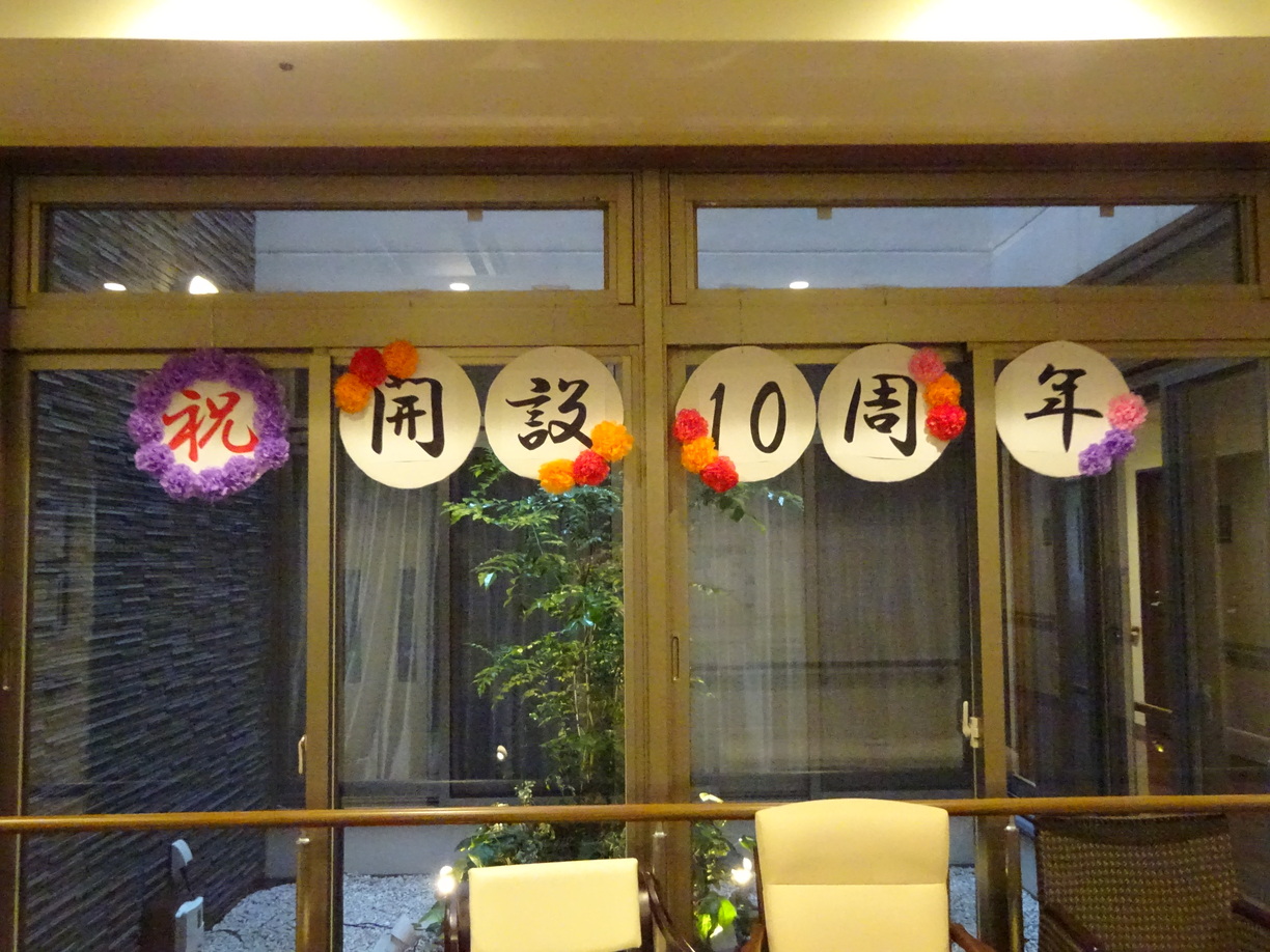 そして記念イベントのエンディングは、10周年ケーキカットでした。ホーム長による挨拶では、今までの感謝を伝えさせていただき...