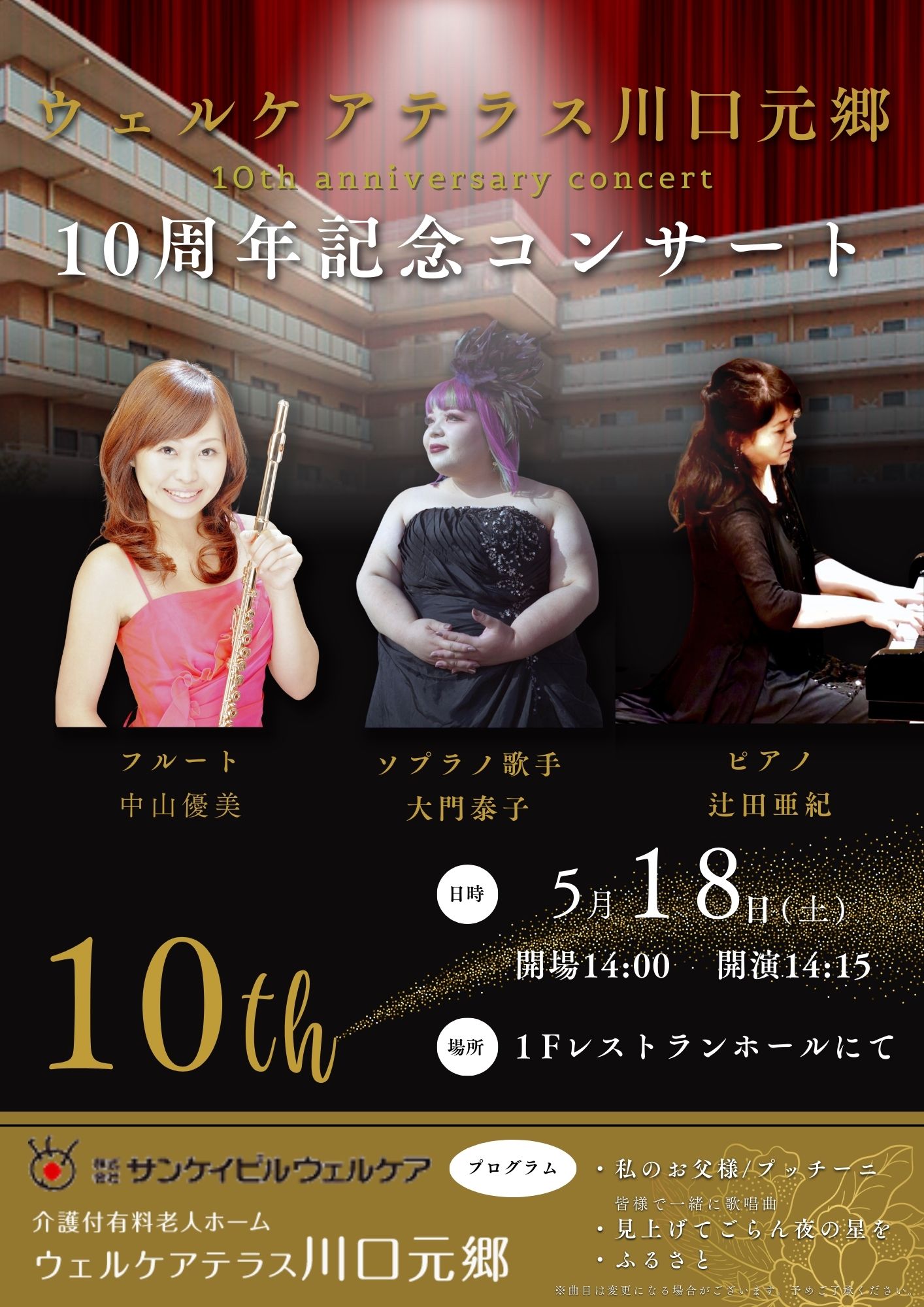 10周年記念イベントの午後の部は、「一緒に歌うピアノコンサート」でした。 ソプラノ歌手、フルート、ピアノの3人の演者さん...
