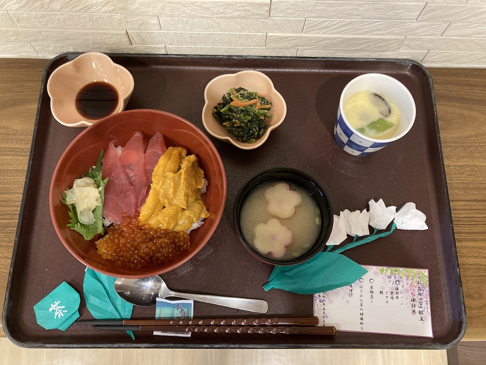 15日(水)お昼にお楽しみ食として 豪華海鮮丼をご提供させていただきました。