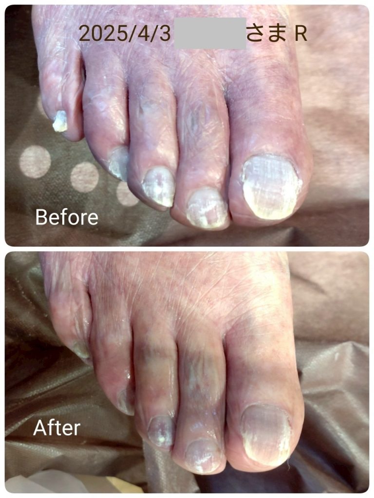 肥厚爪や変形爪のケアを希望されている方がいらしたため、外部の爪専門のケアを行ってくれるスペシャリストの方に来ていただいて希望される方に施術していただきました。