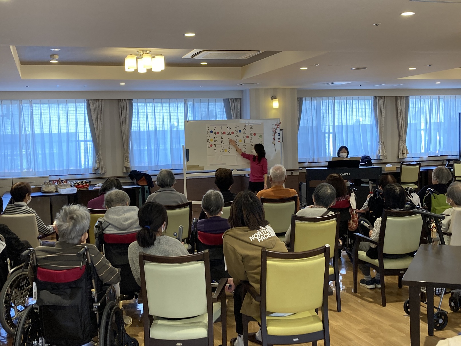 毎月第4木曜日に開催している「ボイストレーニング」 今回も沢山のご入居者様が参加されました(^^)/ 呼吸筋をしっかり使...