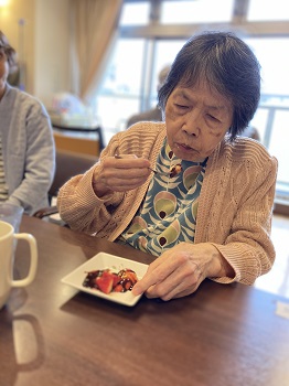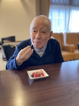 皆様とても楽しんで頂けたようで、「甘くて美味しかった」「果物の中でイチゴが一番好きなのよ」「イチゴとチョコは合うのね」などの嬉しいお言葉いただき・イチゴチョコを召し上がって幸せそうなお顔を見れて我々も幸せです♬