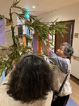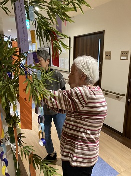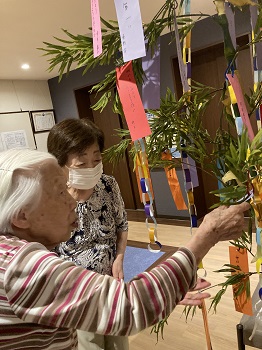 ご入居者様と一緒に短冊を飾りました。