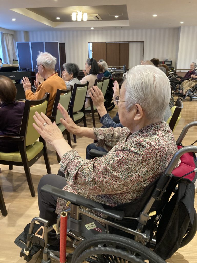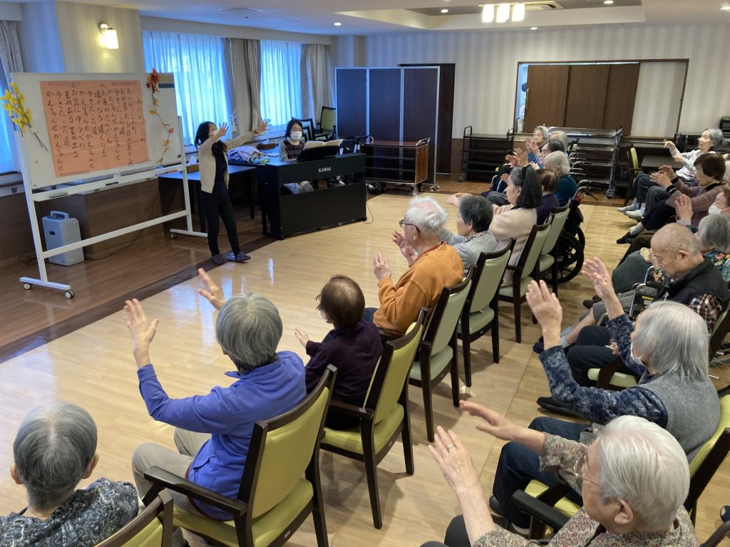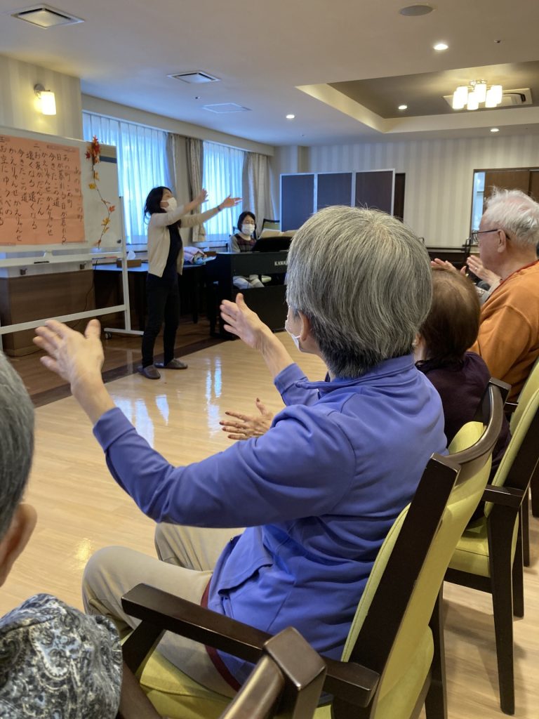 童謡や懐かしの名曲をメインに声や身体を積極的に動かして頂きました。