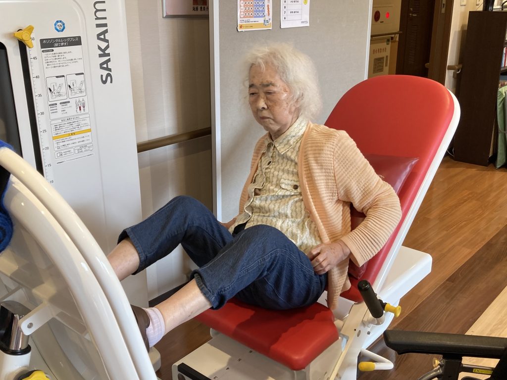 パワーリハビリ以外にも歩行訓練、立ち上がり訓練、テレビ体操、カラオケ、認知症予防体操