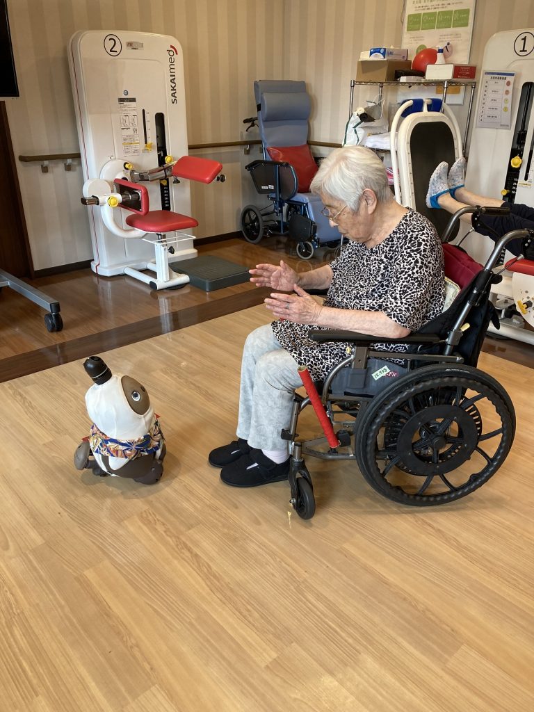 ラボちゃんを一目見にリハビリ室に来られる方々も!笑