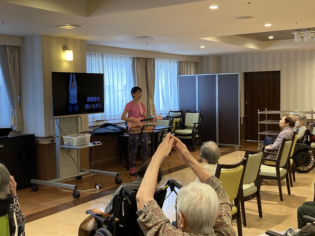 歌を歌ったり、座った状態での上下肢の体操を行ったことで