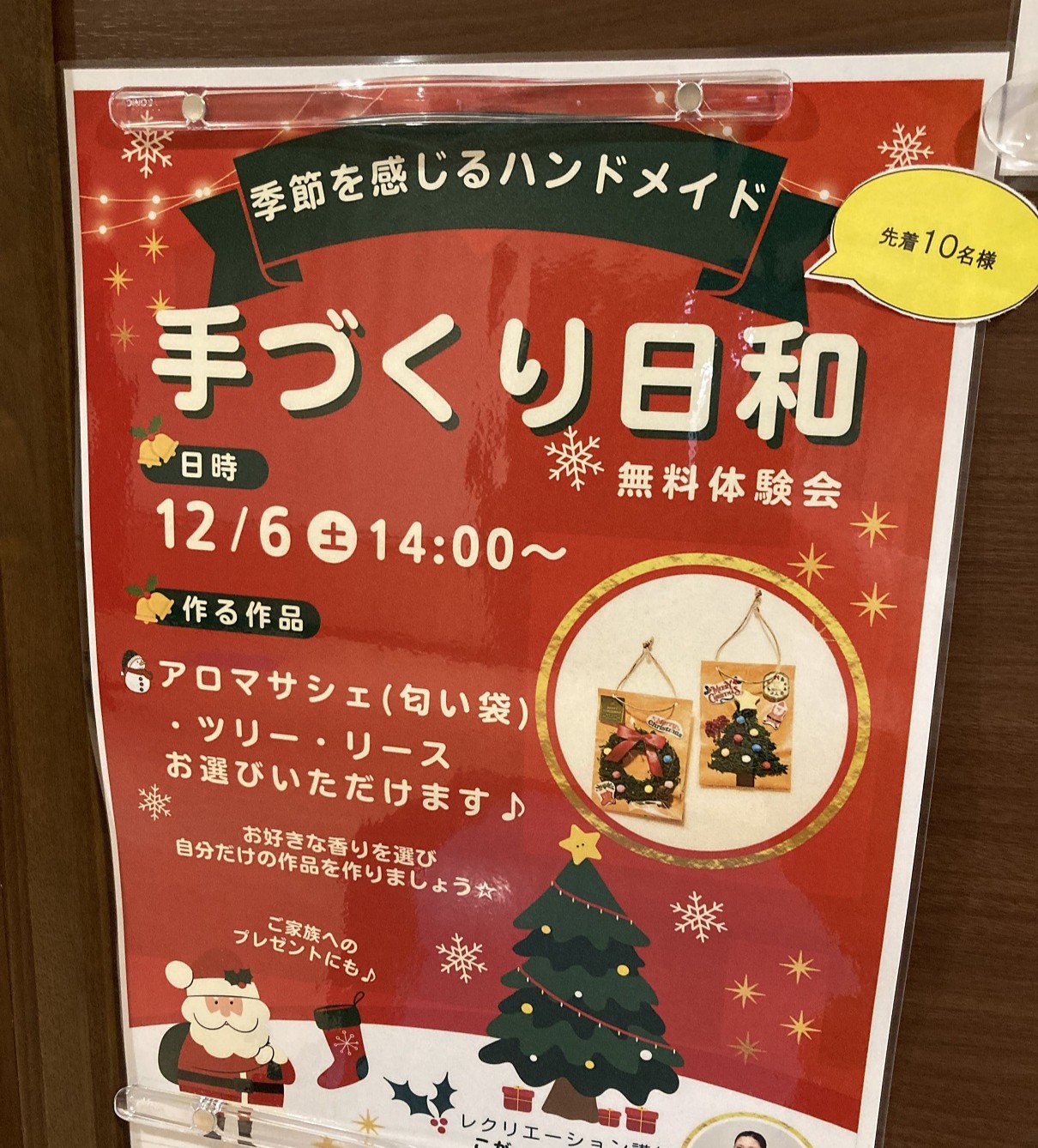だんだんと寒くなってきましたね⛄ 本日、当ホームにて初めて創作レクの講師をお招きして 「手作り日和」を開催し、アロマサシ...