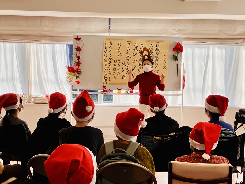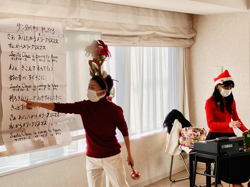 ストレッチ、合唱、楽器演奏と内容は盛りだくさん