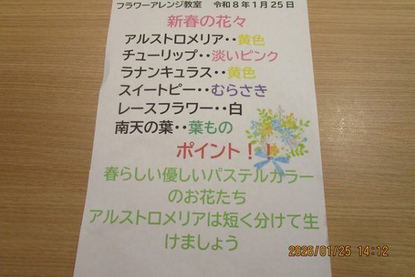 2026.02.25 日常のご様子 詳しく見る 2026.02.21 書道クラブ 詳しく見る 2026.02.18 ひな祭りにむけて🎎 詳しく見る 2026.02.04 小物作り 詳しく見る 2026.02.02 節分 詳しく見る 2026.01.25 お取り寄せスイーツ🍮 詳しく見る 2026.01.25 フラワーアレンジメント 詳しく見る 2026.01.21 寒椿 詳しく見る 2026.01.12 初詣 詳しく見る 2026.01.01 新年あけましておめでとうございます 詳しく見る 2025.12.31 大晦日 詳しく見る 2025.12.21 クリスマス会🎅 詳しく見る