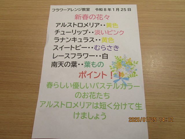 活けるかアドバイスを紙で頂いています。