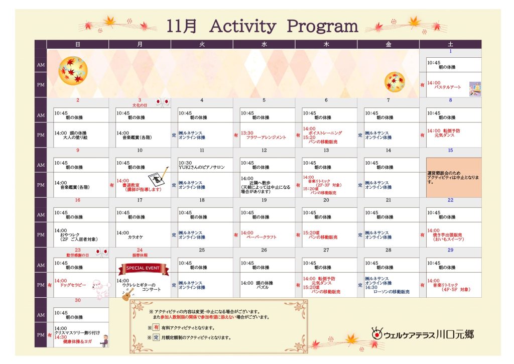 11月のアクティビティカレンダーはこちらです ➡ 11月アクティビティカレンダー