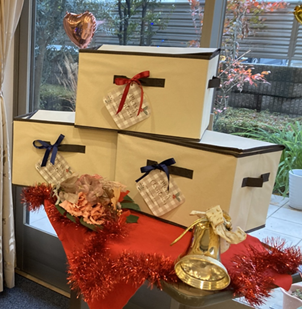 プレゼントはサンタクロースとトナカイに扮した職員がひとりひとりにお渡ししました。サンタの登場に、皆さま笑顔を見せてくださいました。