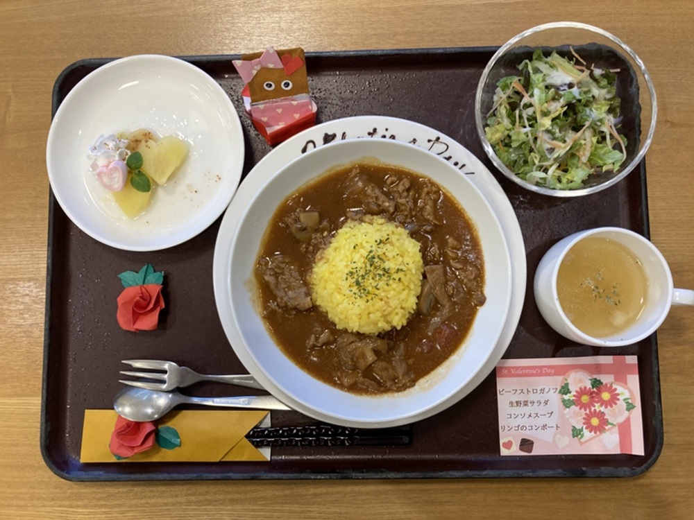 2月14日のバレンタインデーに、昼食は特別なイベント食をご用意しました。