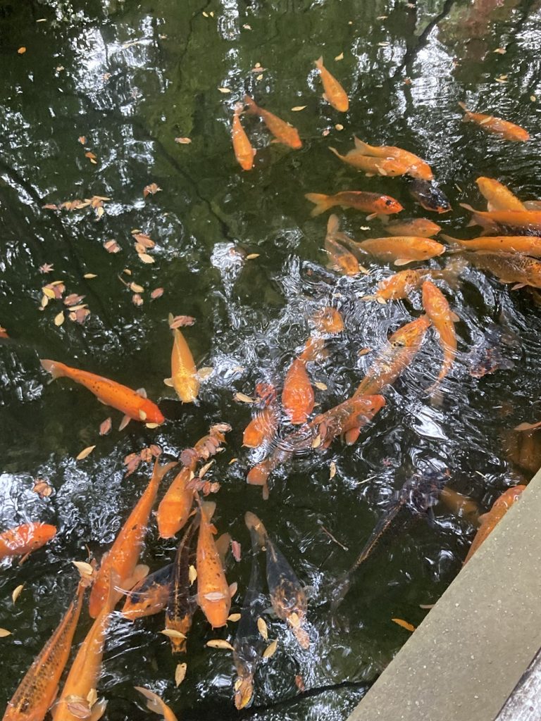 広い境内をゆっくり散策すると、池には立派な鯉がたくさん泳いでおり、優雅に泳ぐ姿に自然と笑顔がこぼれる穏やかな時間が流れました。