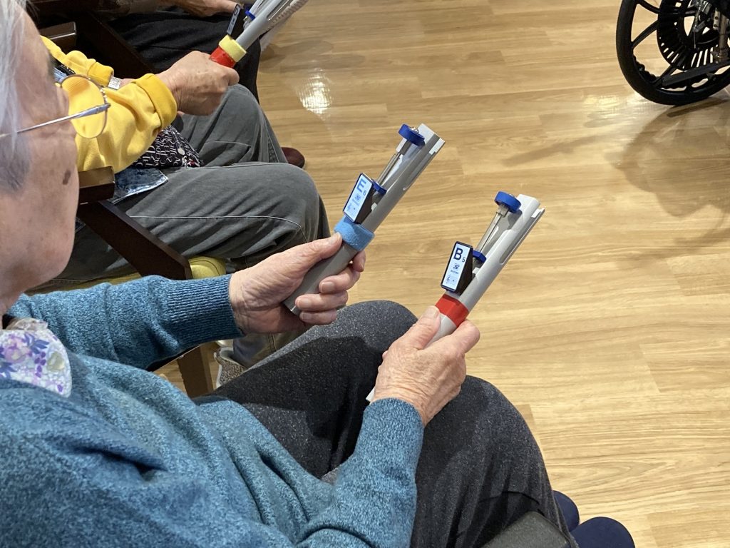 赤・青・黄 を判別して、ご自身の持っているトーンチャイムを振っていただきました(*^^)
